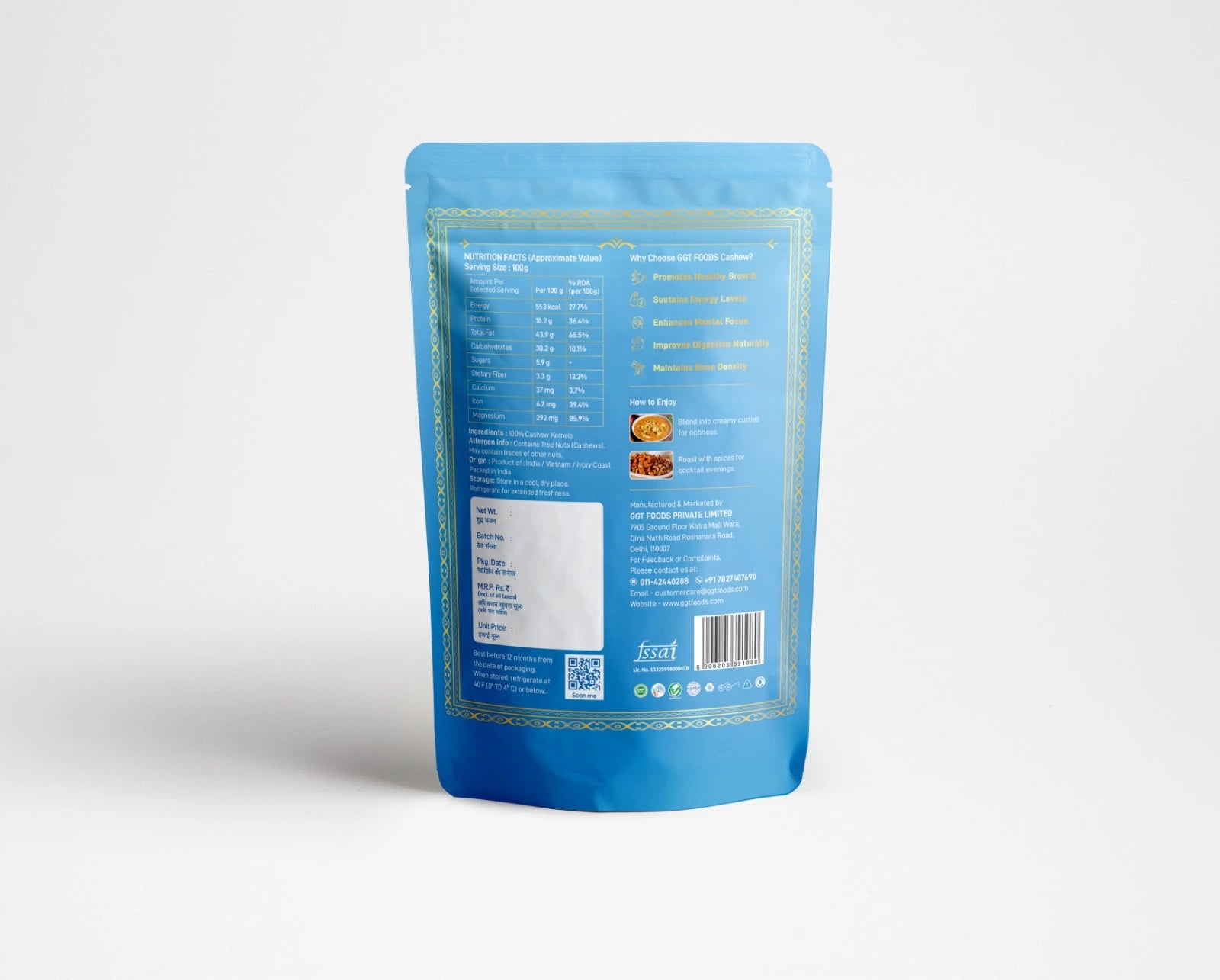 Cashews have been a part of Indian kitchens for centuries, known for their rich, creamy flavor and use in festive cooking and royal feasts. Once a delicacy, they are now enjoyed worldwide as a versatile and nutrient-rich snack. Packed with protein, magnesium, zinc, and healthy fats, cashews help maintain energy levels, support bone health, and boost concentration, making them ideal for students, professionals, and fitness lovers. Their buttery texture makes them perfect for vegan cheese, curries, and smart snacking on the go. GGT Whole Cashews are carefully sourced and naturally wholesome, offering unmatched freshness and taste. Grab your pack today and enjoy the creamy crunch in every snack.